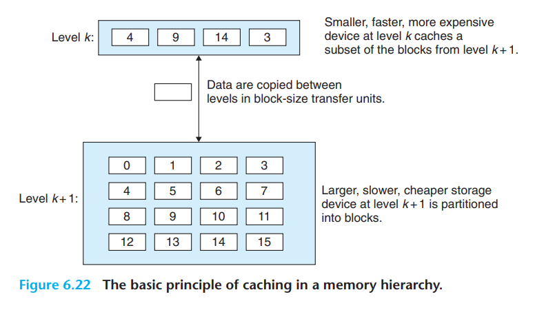 지역성 때문에 프로그램은 K+1레벨에 있는 데이터에 접근하기보단 K레벨에 있는 데이터에 접근하려고 한다. 따라서 K+1레벨에 있는 저장장치는 느려질 수 있고, 따라서 bit당 더 크고 더 싸다.