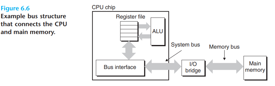 그래픽카드, 모니터, 마우스 키보드, 디스크 같은 입출력장치들은 입출력 버스로 CPU와 메인메모리에 연결된다.