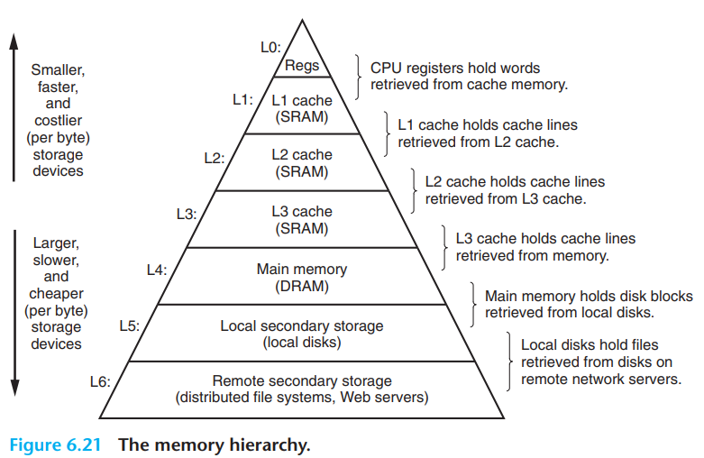 지역성 때문에 프로그램은 K+1레벨에 있는 데이터에 접근하기보단 K레벨에 있는 데이터에 접근하려고 한다. 따라서 K+1레벨에 있는 저장장치는 느려질 수 있고, 따라서 bit당 더 크고 더 싸다.