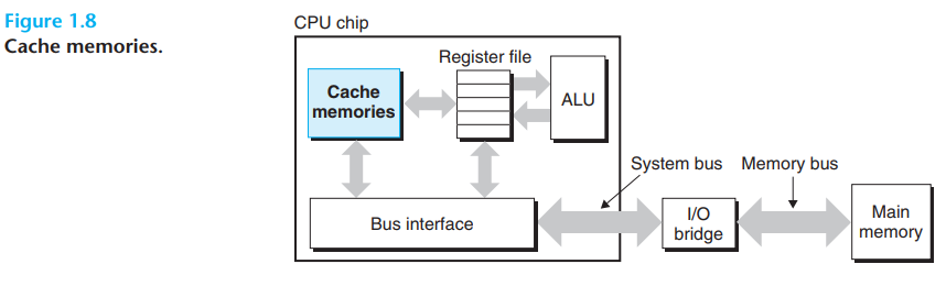 CPU가 매번 메모리에 접근해서 데이터를 읽고 쓰면 많은 시간이 소모된다. 이런 프로세서(cpu)와 메모리 사이의 gap을 처리하기 위해 케시 메모리라는 더 작고 빠른 저장 장치를 CPU 내부에 만들어 두고, 메인 메모리 로부터 자주 사용하는 정보를 저장해두어 처리 속도를 향상시킨다. CPU는 데이터를 처리할 때 cache부터 검사하고 데이터가 존재한다면 빠르게 가져올 수 있게 된다.