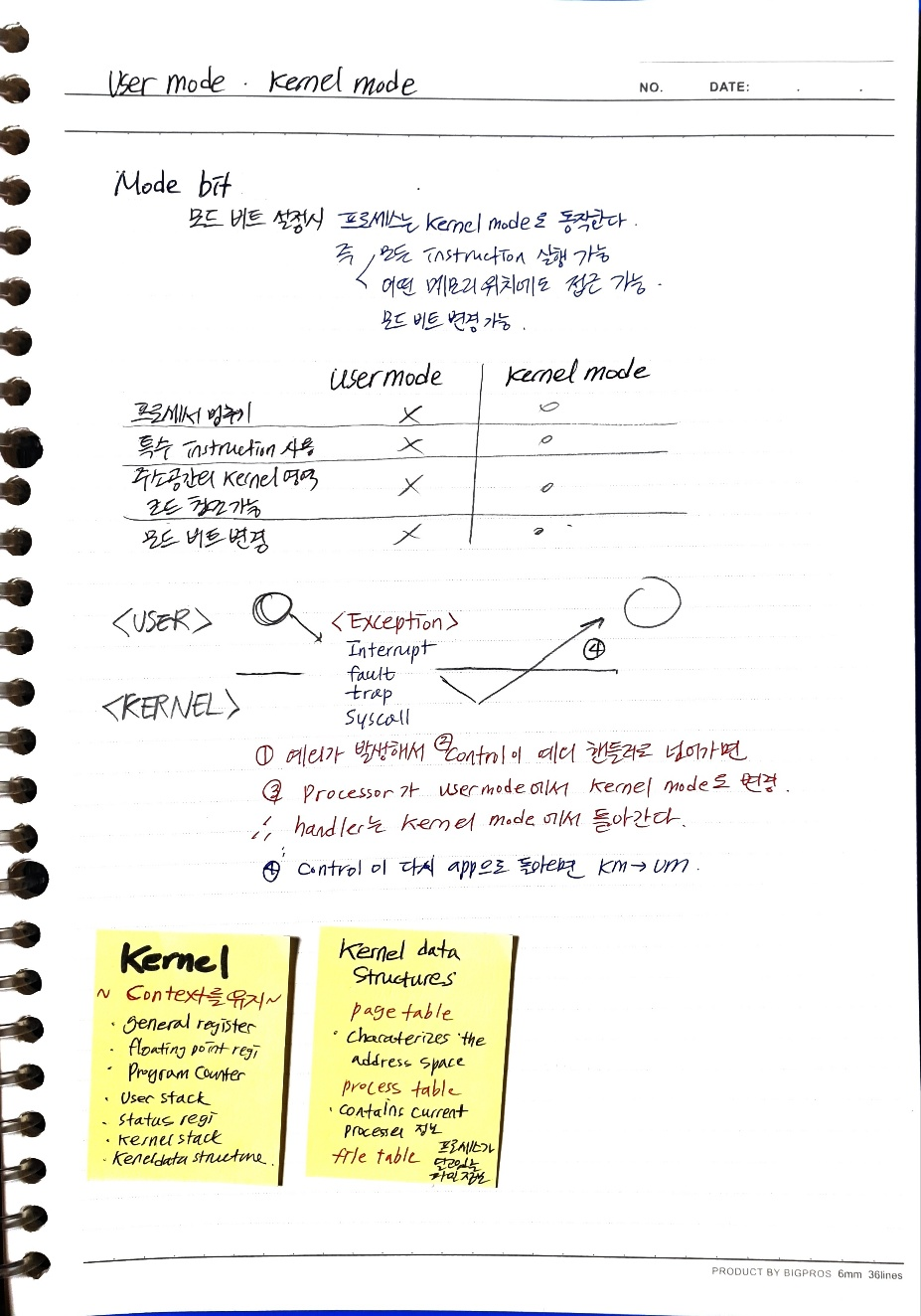 - 커널 모드로 진입한 OS는 HW 자원을 자유롭게 접근하여 쓰고 읽을 수 있다.(입출력/메모리 할당 등)