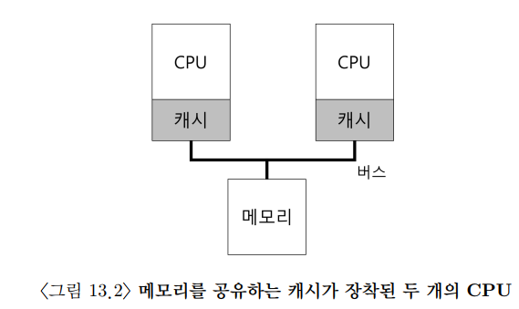 single process with multi thread에서 발생하는 문제와 유사하다: 하나의 시스템에 여러 프로세서가 존재하고 하나의 공유 메인 메모리가 있을 때 동기화 문제가 발생할 수 있다.