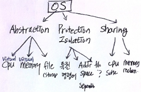 이것을 수행하기 위해 OS의 중요 role에 대한 키워드가 세 개 있다.