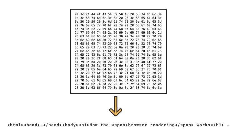 서버가 HTML을 Raw bytes 형식으로 전송하면 브라우저는 이를 받아 브라우저가 이해할 수 있는 format으로 변환합니다. 문자로 변환된 정보는 토큰화됩니다.